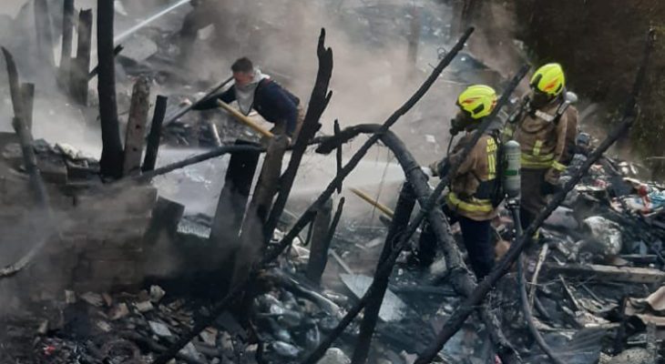 Cuerpo Oficial de Bomberos de Bucaramanga extinguió el incendio de dos ranchos en Campo Hermoso